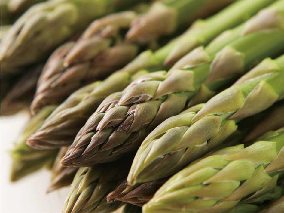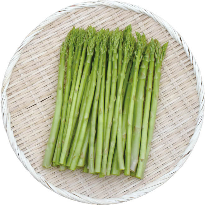 グリーンアスパラガスは、茹でてよし、炒めてよし、揚げてよしの万能野菜。栄養価も高く人気の作物です。土佐のあさいち農園では、ハウスの温度管理を徹底し、化学肥料を使わず、立茎栽培で育てています。もうひとつのこだわりは、ニガリの散布。ミネラルが豊富で食感が良く、食べると甘味を感じます。