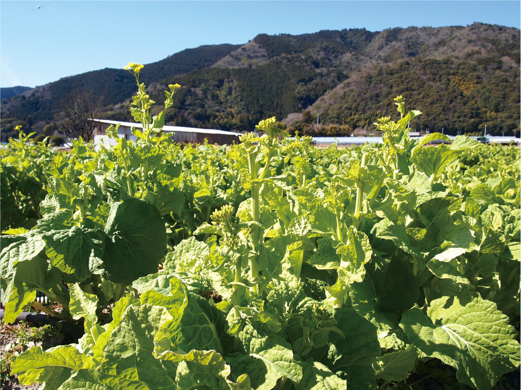 寒い冬をたえて、南国高知に春をつげる季節の旬菜。土佐のあさいち農園では、露地で栽培しています。収穫は黄色の菜の花が咲く前。緑色のつぼみは、粒のそろいもよく、色つやも鮮やか。茹でると、ほろ苦さのなかに甘味が出て、旬の味覚を感じます。柔らかい花茎、葉、つぼみは和え物などにするとおいしいです。
