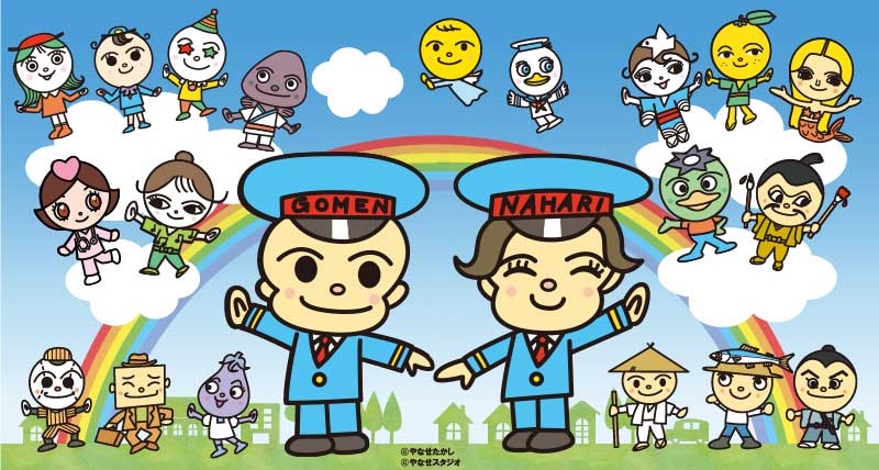 高知県出身の漫画家、やなせたかし氏とやなせスタジオが手がけた土佐くろしお鉄道「ごめん・なはり線」21駅キャラクターや、「中村・宿毛線」サニーくん・サンコちゃん、安芸市特産「釜あげちりめん丼」をPRするちりめんドンちゃん、北川村「モネの庭」マルモッタンキャラクターきたがわモネさんの著作物使用管理業務を行っています。 申請書をご提出いただくことで、 有償または無償にてキャラクターデータをご提供しますので、ぜひご活用ください。