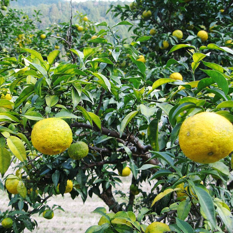 北川村出身である中岡慎太郎がユズの生産を奨励したことから、今では日本有数のゆずの産地となり、12月ごろの収穫期になると山全体がユズの実で黄色く染まります。また、どの家庭でもユズしぼりが行われるため、村全体がほんのりユズの香りで覆われます。
