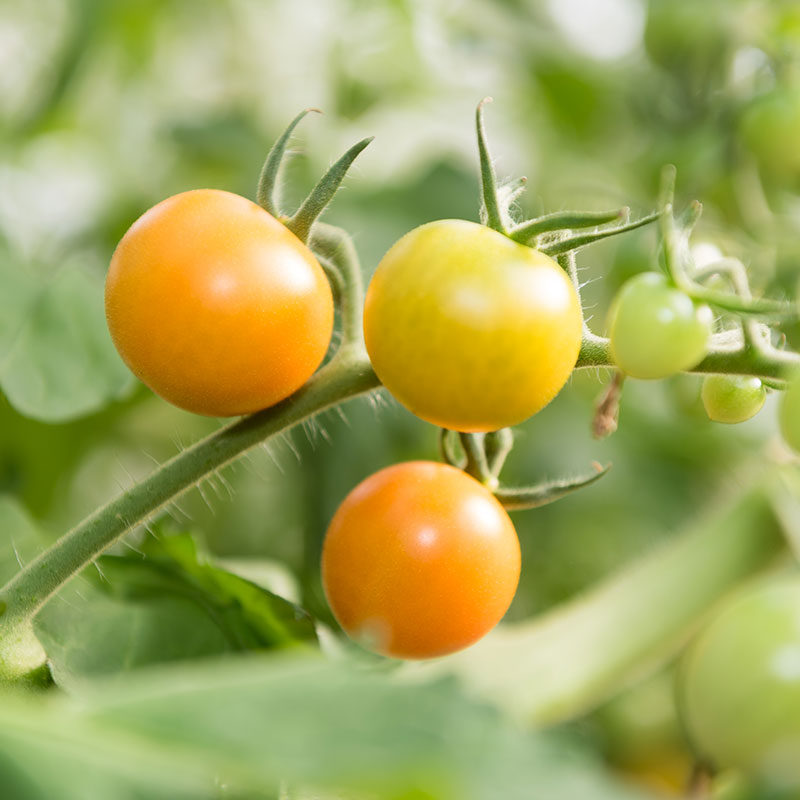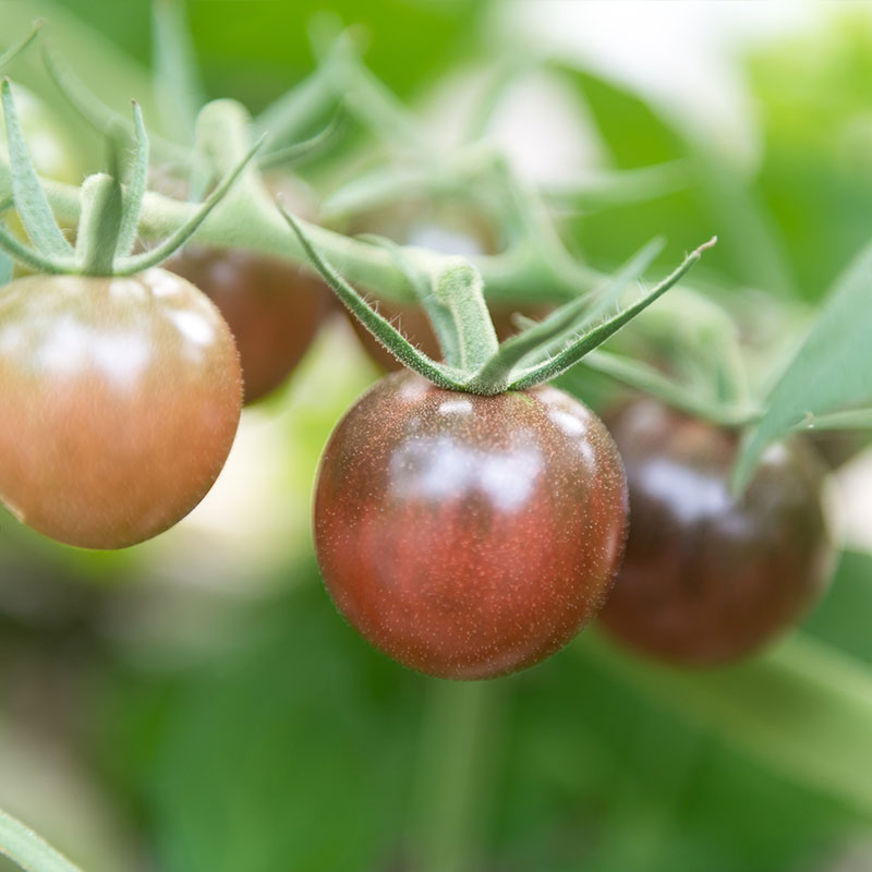 化学肥料を使わず、ニガリの葉面散布で高糖度をキープ。水まきも怠りません。黄色、オレンジ、紫、白と彩りも鮮やか。フルーティな香りや甘味を感じる品種、酸味と甘味のバランスが絶妙な品種など、トマトが苦手な方もおいしくいただけます。