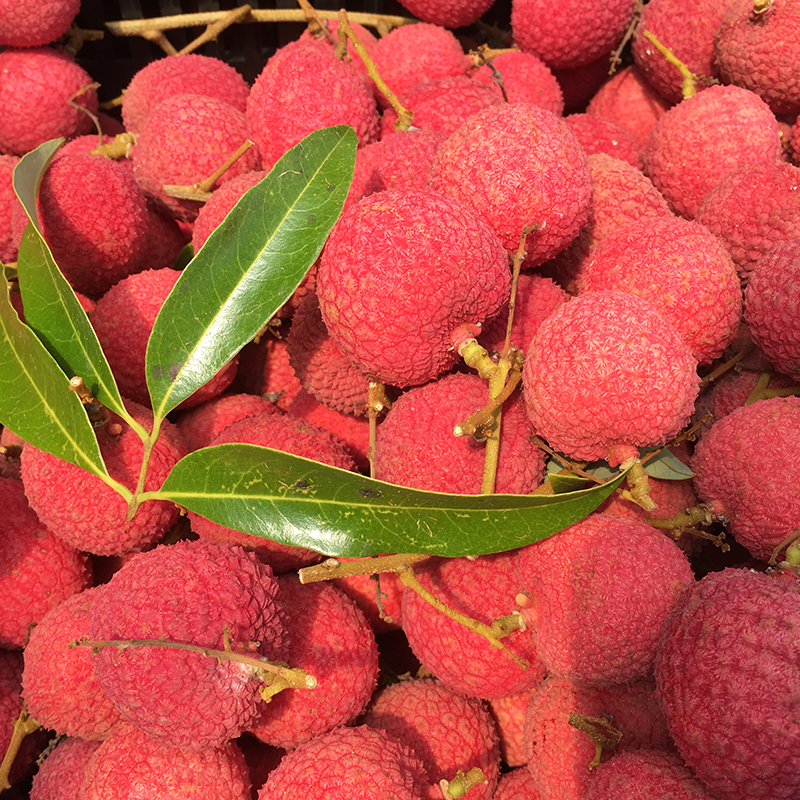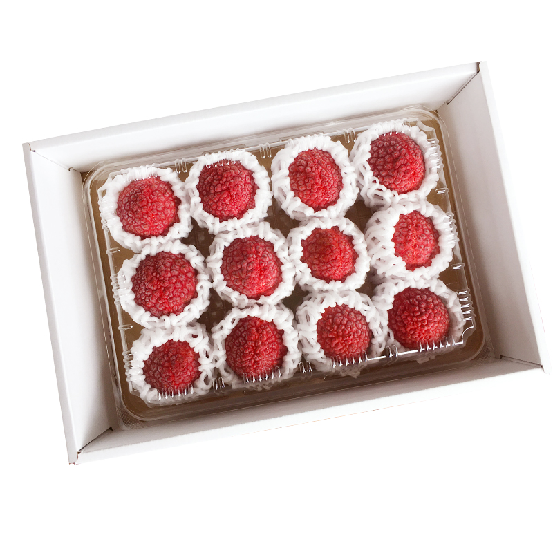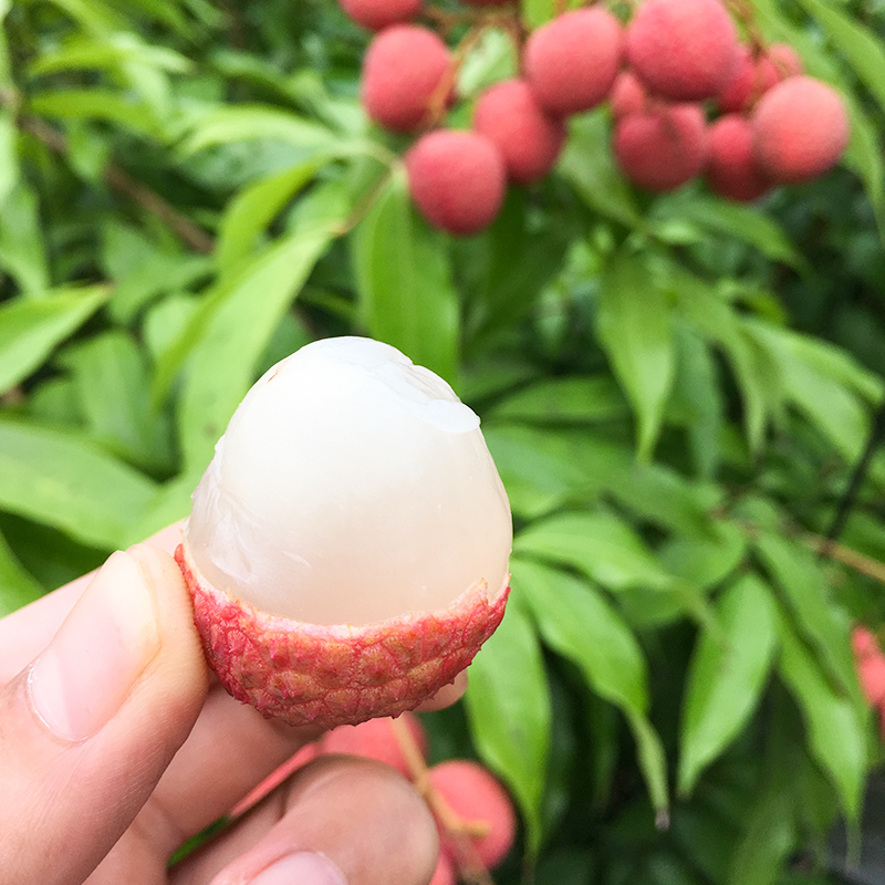 よく見る冷凍されたライチは、日にちが経っているため黒く茶色い果皮に包まれていますが、このライチの果皮は鮮やかな赤色をしています。これは新鮮な証拠。収穫期間は2週間ほどととても短いのでぜひお早めに。