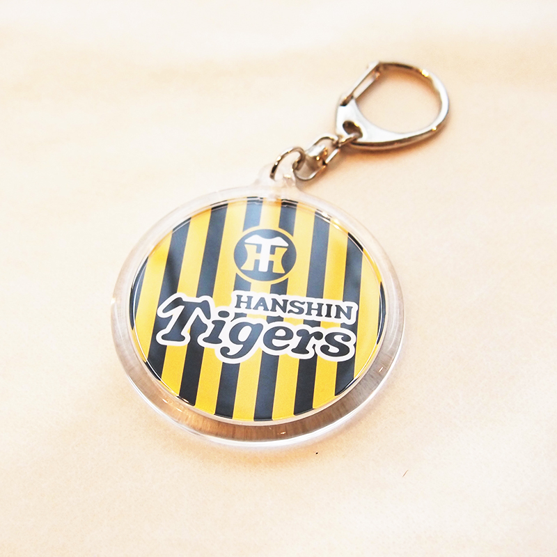 タイガースのロゴマークとCamp in Akiの文字が入った安芸限定のキーホルダーです。