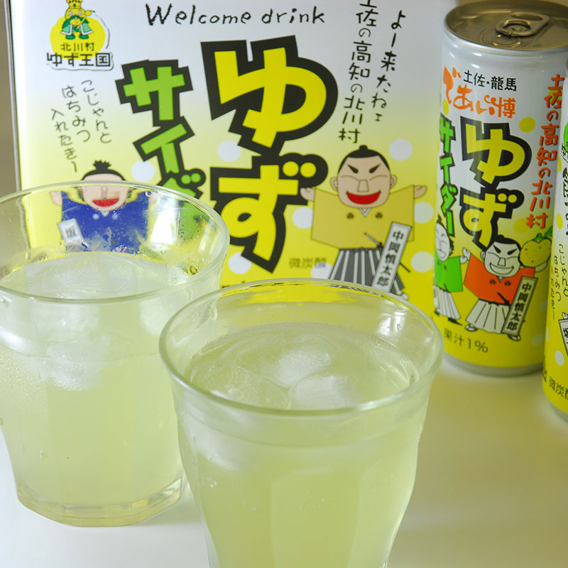 北川村産のユズ果汁と、まろやかなはちみつで作られた微炭酸飲料。ほんのりユズが香り、スッキリとした後味で飲みやすく子どもさんにも大人気。