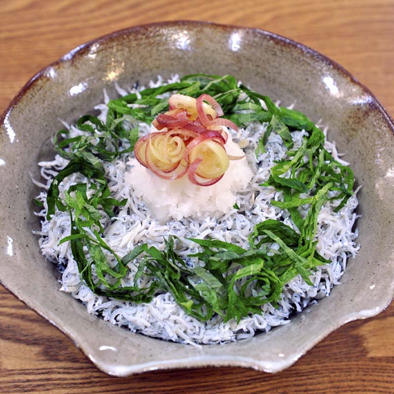 もちろんそのまま食べてもおいしい釜あげちりめんは、カルシウムと鉄分がたっぷり含まれており、お子様のおやつにも最適です。お醤油やポン酢、ユズ酢などを少しかけてご飯のお共に。また、ホウレン草や小松菜のおひたしの上にのせたり、かき揚げや炒め物にもよく合います。釜あげちりめんは、様々な料理に使え、毎日食べても飽きない味わいが魅力的な食材です。